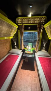 סיימנו עם סאפה ועברנו ליעד הבא שלנו. אז אחרי שהתנסינו ברכבת לילה הגיע הזמן לאוטובוס לילה! היעד הבא שלנו- טאם קוק (Tam Coc)- נין ביו. האופציה הנוחה ביותר להגיע היא עם סליפר אוטובוס אוטובוס לילה עם מיטות חצי שכיבה שמאפשר לנוח/ לישון לאורך הנסיעה. המושבים הם מיטות חצי שכיבה עם אפשרות לישון, עם אפשרות להפעיל מסאז׳ שזה הלם של החיים. המיטה עצמה לא ארוכה במיוחד. יש מסך לכל אחד עם סרטים וקיבלנו שמיכות כיפיות, כריות ובקבוק מים. משך הנסיעה: כ-8–9 שעות, תלוי בתנועה ובתחנות עצירה בדרך. עלה 45€ ללילה לזוג ( 179₪ לזוג) וגם את הנסיעה הזו, הזמנו דרך האתר 12GO.