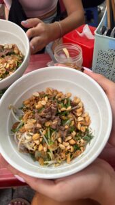המשכנו את היום עם סיור קולינרי שנמשך 2.5 שעות עם המדריכה אלה. אכלנו אוכל ויאטנמי אמיתי, אלה לקחה אותנו ממש למקומות של המקומיים- באמת המקומות הכי אותנטיים לטעום את אוכל הרחוב, אני באתי בוויב של לטעום הכל ואני ממש מקפידה על זה בחו״ל, מנסה כמה שאפשר להפתח לטעמים חדשים. טעמנו מאכלים סופר טעימים וגם שתינו משקאות מקומיים. בהאנוי נולד אחד המשקאות הכי מיוחדים בעולם- קפה עם ביצה מוקצפת. החלב המרוכז מתערבב עם חלמון ביצה טרי שמקציפים עד שמקבלים קרם סמיך ומתוק, ואז מוזגים מעל אספרסו ויאטנמי חזק. התוצאה? שכבה קרמית וטעימה!