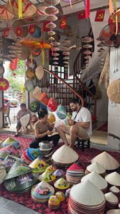 הכפר השני- Conical Hats Village – כאן פגשנו את הנשים שיושבות בסבלנות ורוקמות ביד את הכובעים המסורתיים של וייטנאם, ה־Nón Lá. כל כובע עשוי משכבות דקות של עלי דקל וחוטים עדינים, ותוך כדי העבודה הן גם מספרות איך הכובעים עדיין חלק בלתי נפרד מהיומיום, מהשדות ועד לשווקים. בסוף כל אחד קיבל כובע ויכל לקשט אותו בעצמו.