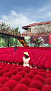 הפפר הראשון- Incense Village – הכפר שבו מייצרים את כל מקלות הקטורת הצבעוניים. בכל פינה רואים “שמשות” ענקיות של מקלות בורדו וורודים שמתייבשים בשמש. המקומיים מראים את תהליך הייצור – מהשזירה ועד החיתוך והצביעה – וזה יוצר מראה פשוט מהמם לתמונות. האמת? המקום די מתויר, אבל אי אפשר להישאר אדישים לשדה קטורת המטורף שהם עושים כאן.