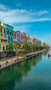 אחר הצהריים הגענו ל־Grand World Hưng Yên, שנמצא במרחק נסיעה חצי שעה–שעה מהאנוי. קומפלקס ענק שמרגיש כמו עולם אחר: תעלות מים צבעוניות וגונדולות בסגנון ונציה- מושלם לתמונות רומנטיות, מופע ערב “The Grand Voyage” עם אפקטים של מים, אורות ומוזיקה, רחוב קוריאני מלא מסעדות ואווירה צעירה – K-Town, חנויות, בתי קפה ונקודות צילום בכל פינה.