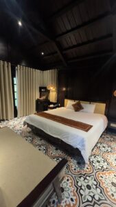 הגענו למלון המהמם שלנו ל-3 לילות הקרובים- Nature Garden Ecolodge Ninh Bình . הזמנו חדר מפנק ממש מרווח עם חדר רחצה ענק, בנוסף, אמבטיה חיצונית, מרפסת ונוף ירוק עם נהר ממש מחוץ לחדר. המלון ממוקם יחסית מרוחק ממרכז העניינים אבל יש פה שקט, מלון פסטורלי ברמות- תוכלו להשאיל כאן קייאק ולשוט מסביב למלון.