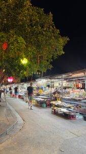 אחרי זה יצאנו לבלות בערב, הלכנו לשוק הלילה שנמצא לאורך הנהר, קניתי שם כמה חצאיות וגופיות בפחות מ-50 ש״ח. תוכלו לקנות כאן כל מיני מזכרות, או חיקויים. נכנסנו לאחד הברים הסמוכים ועשינו שייט בנהר. בילוי שווה ממש לשעות אחר הצהריים והערב!
