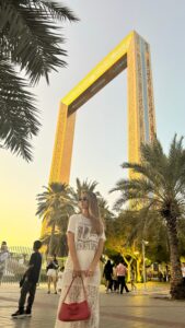 המשכנו לנקודת התצפית הבאה, אחד המבנים המפורסמים והיפים בדובאי- Dubai Frame. ניסינו להספיק לצפות בשקיעה מלמעלה אבל להפתעתנו היה תור ענק בכניסה (כמובן שהזמנו כרטיסים מראש). תכינו את עצמכ לתורים בכניסה. נחמד להגיע לכאן לפני השקיעה ולהיות כאן גם באור וגם בחושך. יש עוד נקודות תצפית רבות ברחבי כל העיר, בעיניי ממש מספיק לבחור נקודת תצפית אחת.